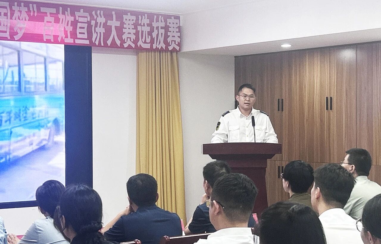 接著,他分享了1路駕駛員律發(fā)彬深夜“暖心擺渡”錯過末班車的游客和10 路駕駛員張南南勇救起火三輪車的故事。“我們開的是十米公交,裝的卻是整個城市的溫度。” 周虎表示,公交人用安全駕駛詮釋“敬業(yè)”,用互助幫扶傳遞 “友善”,用每一次??扣`行“文明”“和諧”,讓車廂成為傳遞溫暖的“文明專列”。他的宣講既有生活溫度,又有實踐厚度,讓聽眾看到了平凡崗位如何書寫核心價值觀的生動答卷。